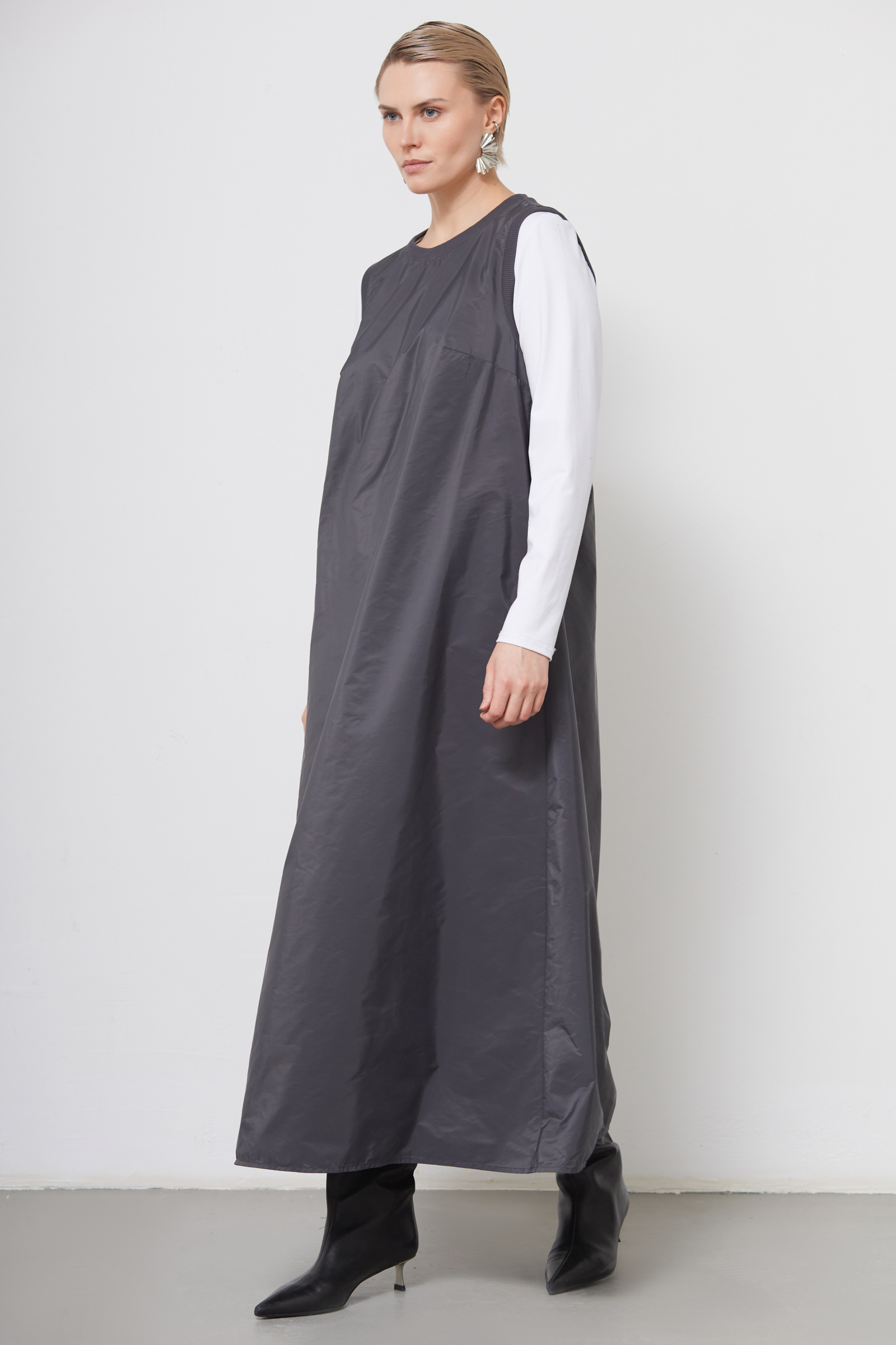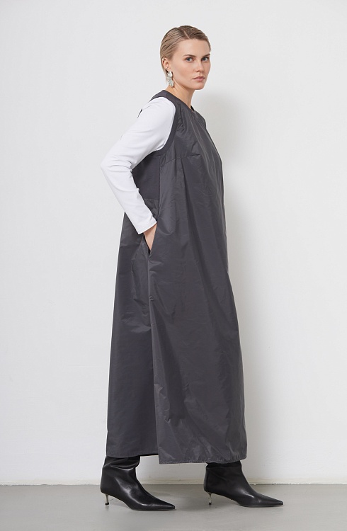 Длинный сарафан из плащевой ткани с трикотажной отделкой.