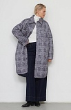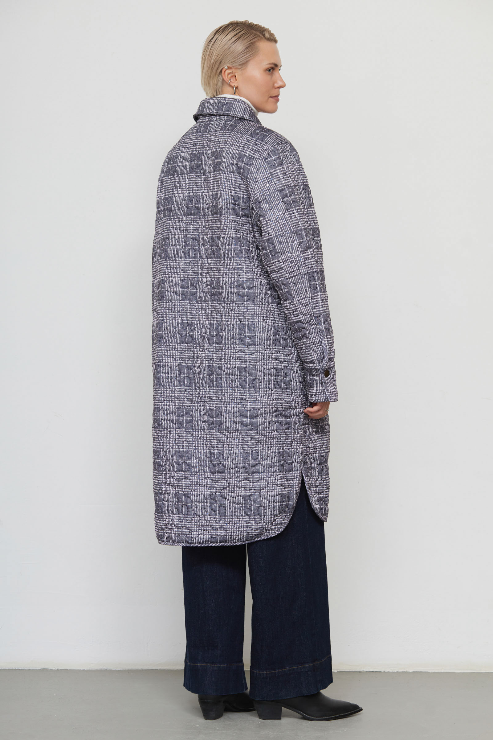 Стеганое пальто-рубашка oversize в клетку с пайетками.