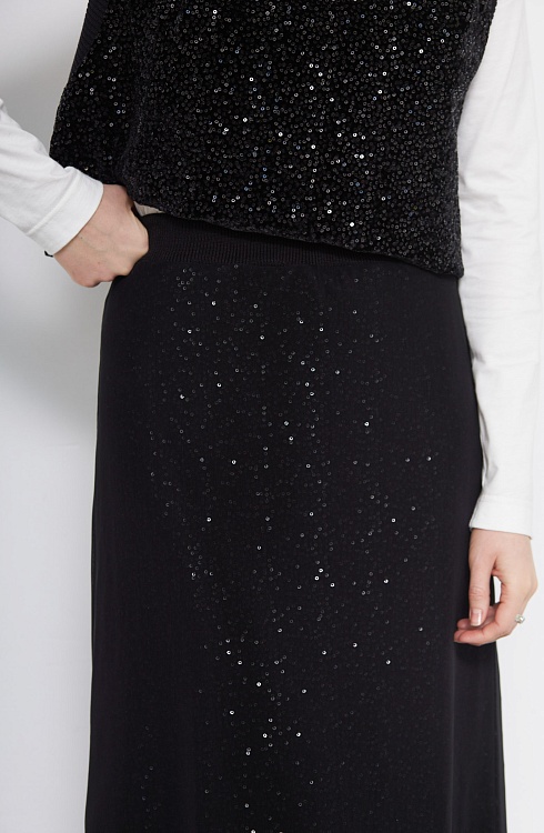 Двуслойная юбка миди из бархата с пайетками и сеткой сверху.