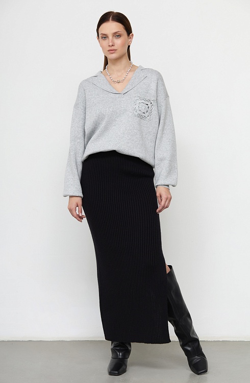 Длинная облегающая юбка из мягкого вязаного трикотажа в рубчик.