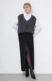 Длинная юбка из мягкой костюмной ткани с декоративными пуговицами и кружевной вставкой.