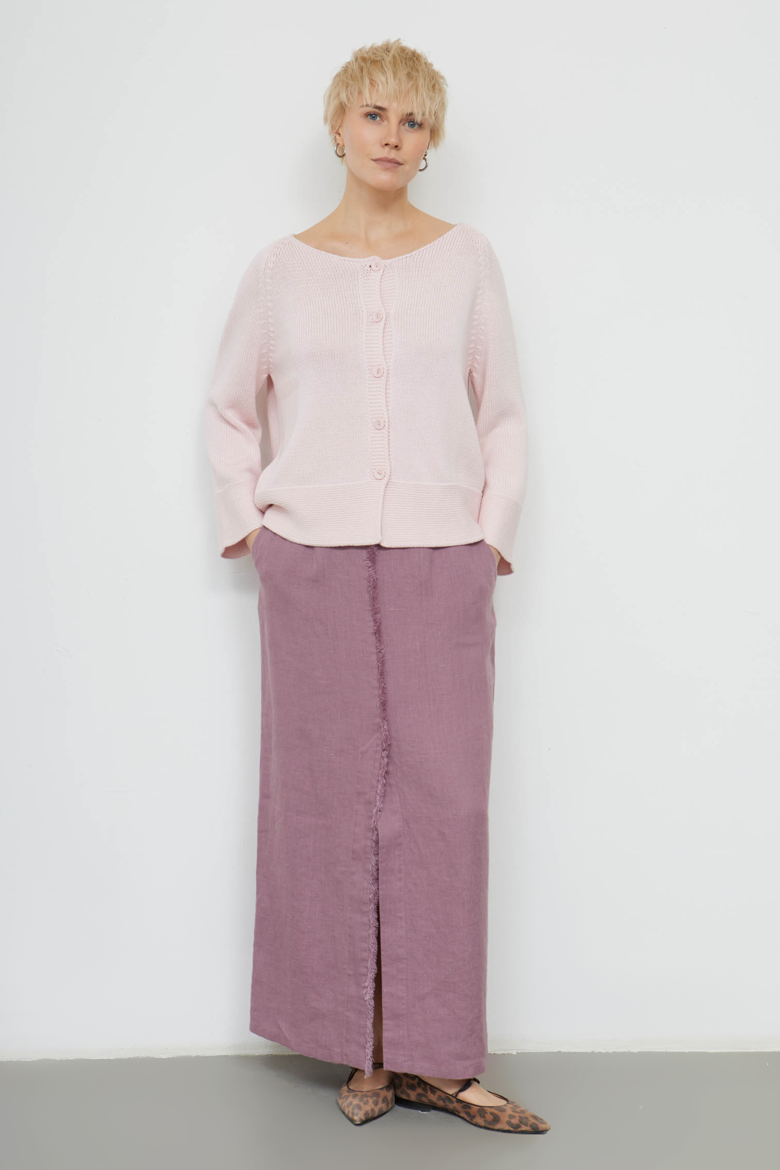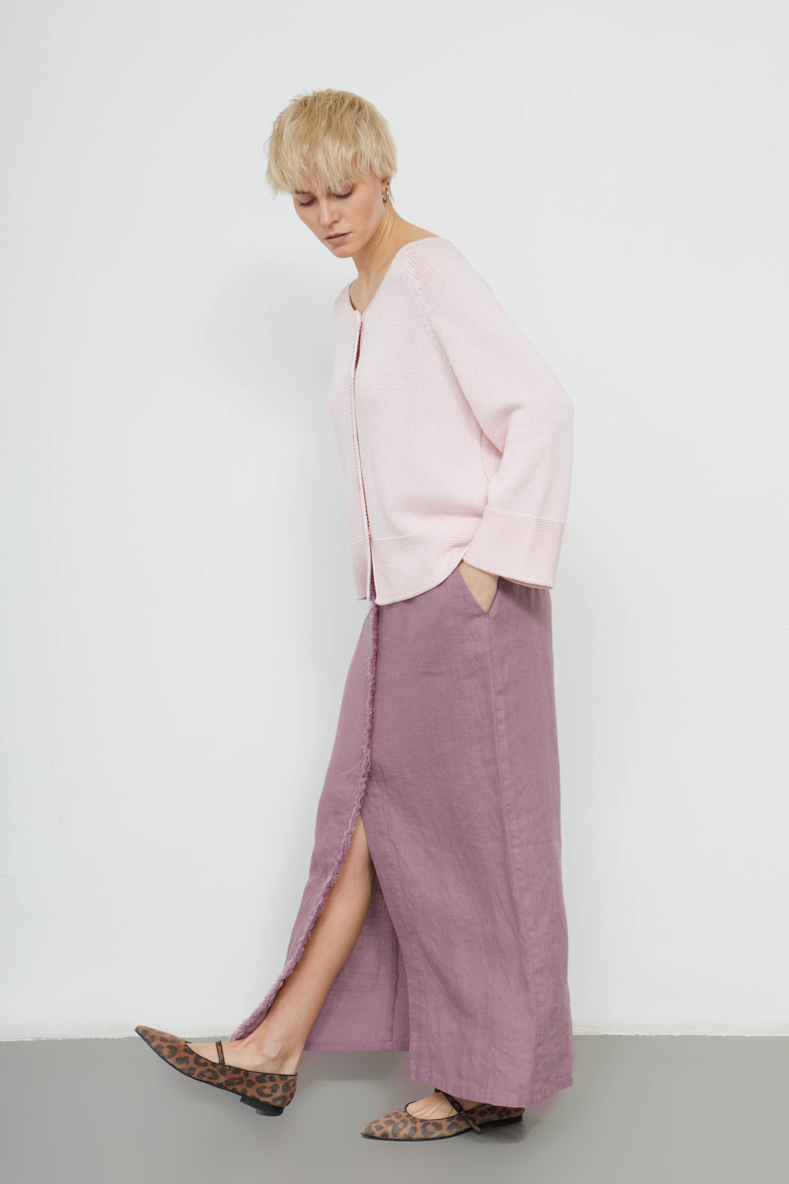 Юбка льняная с бахромой и разрезом