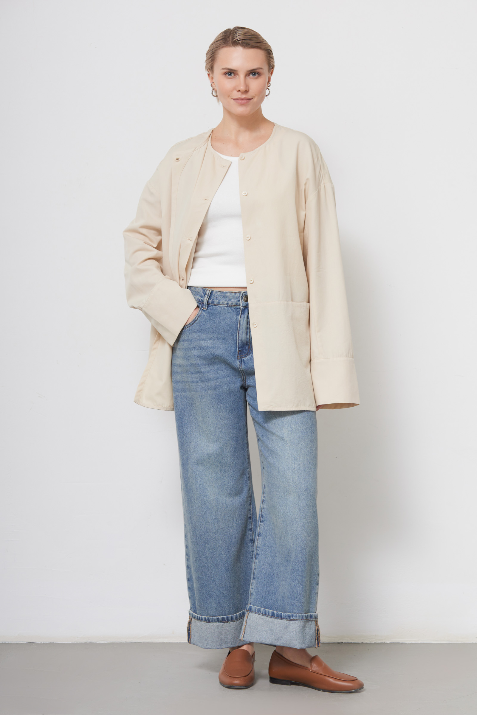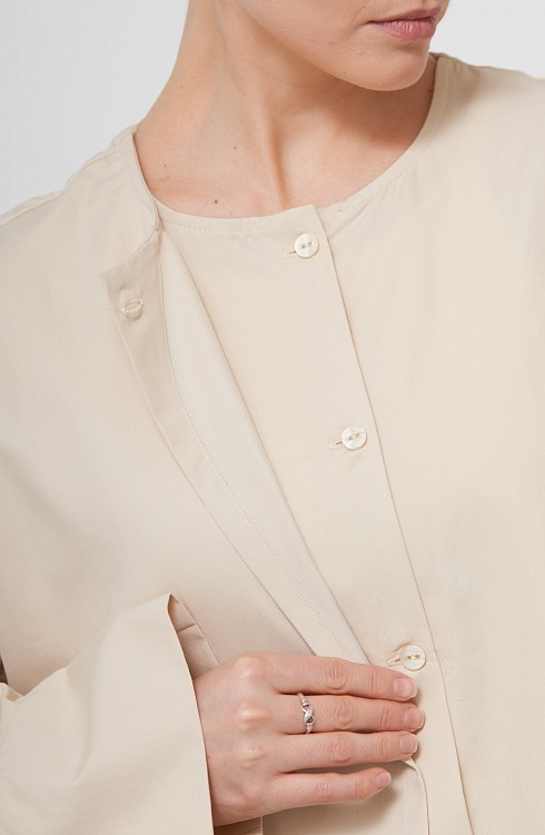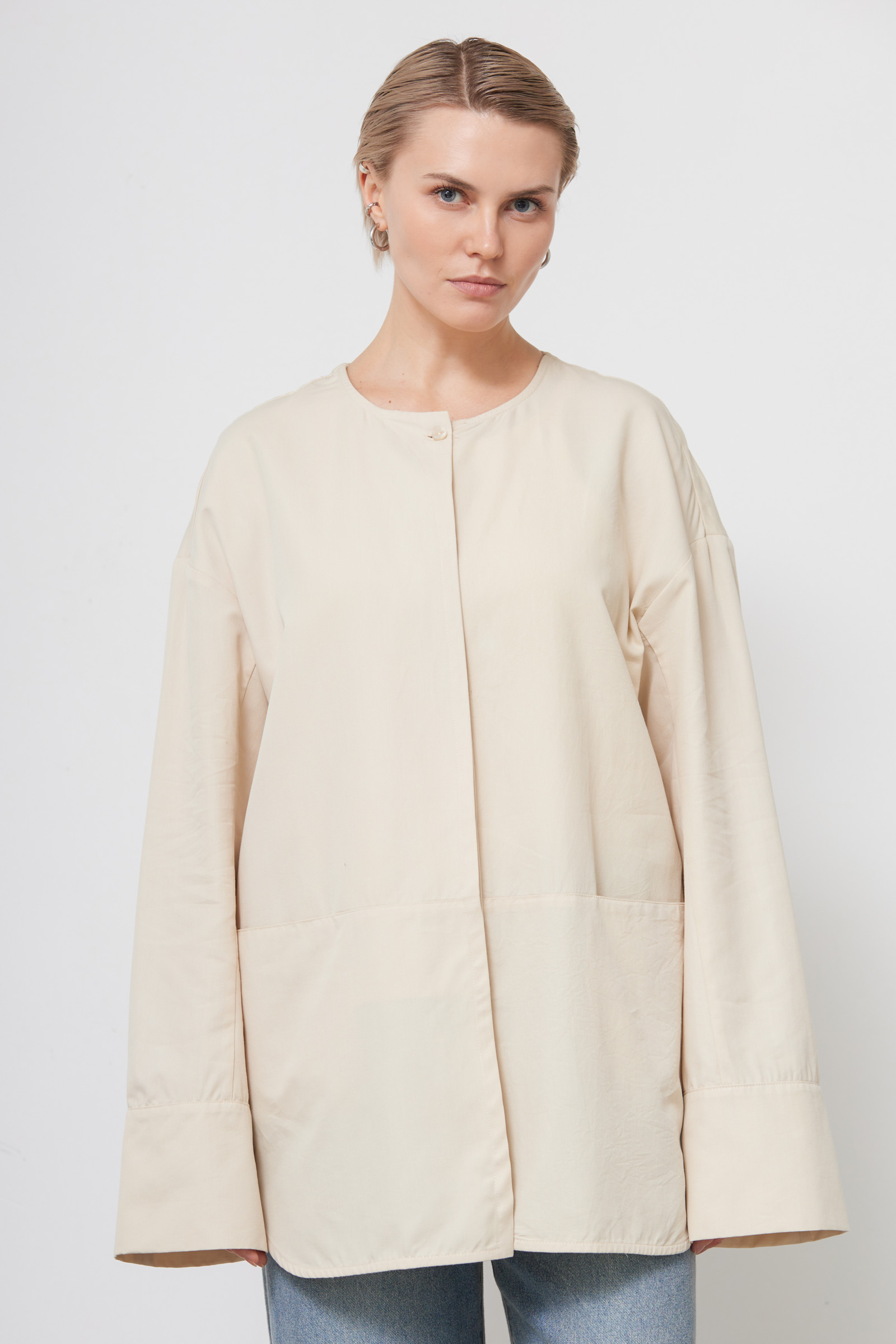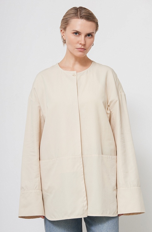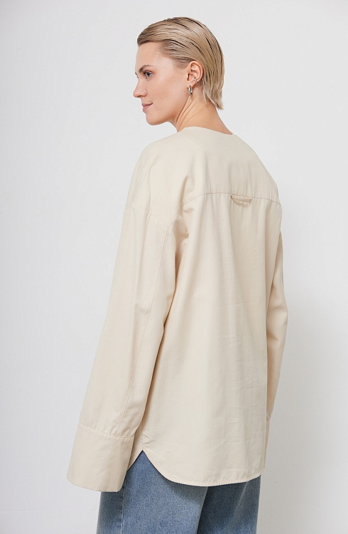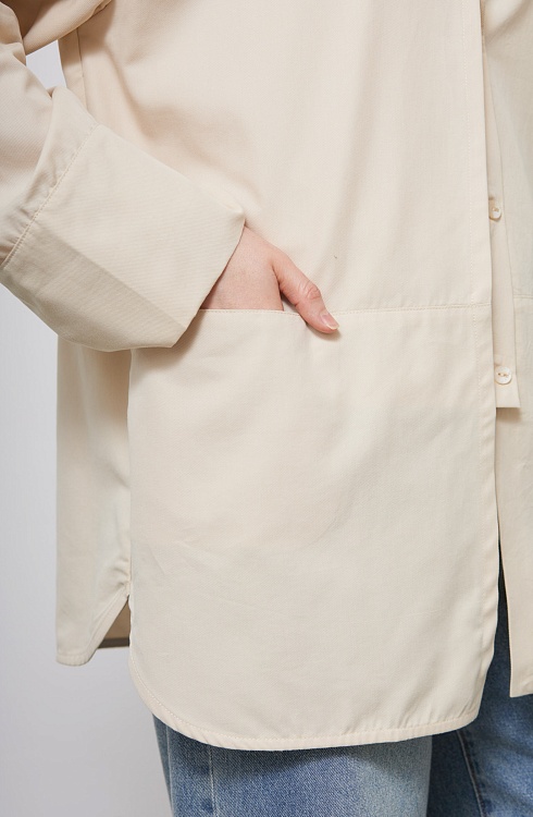 Комбинированная рубашка oversize с отлетной полочкой и карманами.