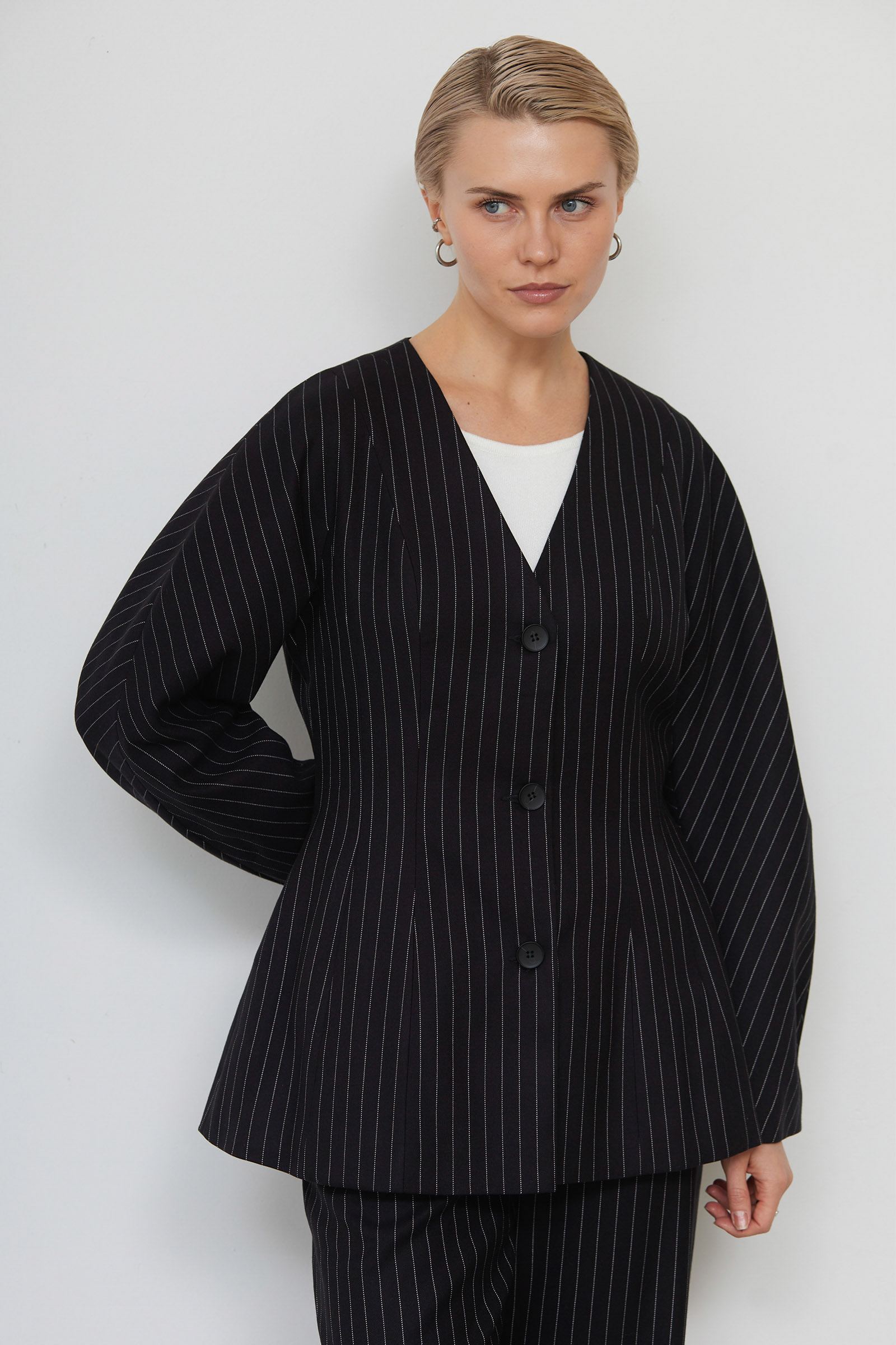 Жакет в полоску с баской