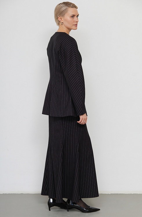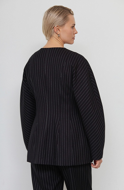 Костюмный жакет из поливискозы в полоску с баской.