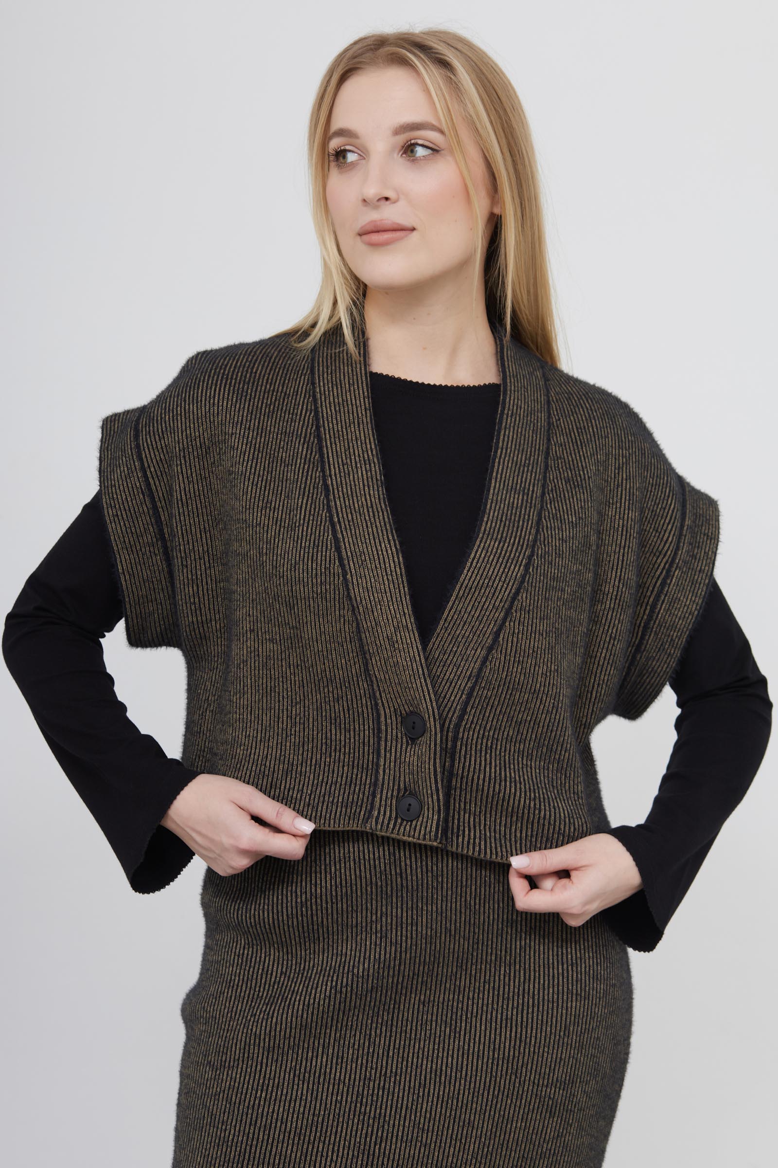 Укороченный жилет из вязаного трикотажа в рубчик.