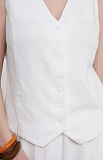 Костюмный жилет из вискозы и льна с V-вырезом и фигурной линией низа.