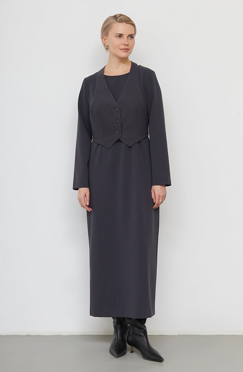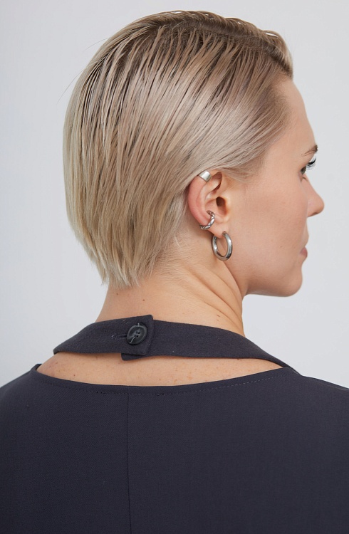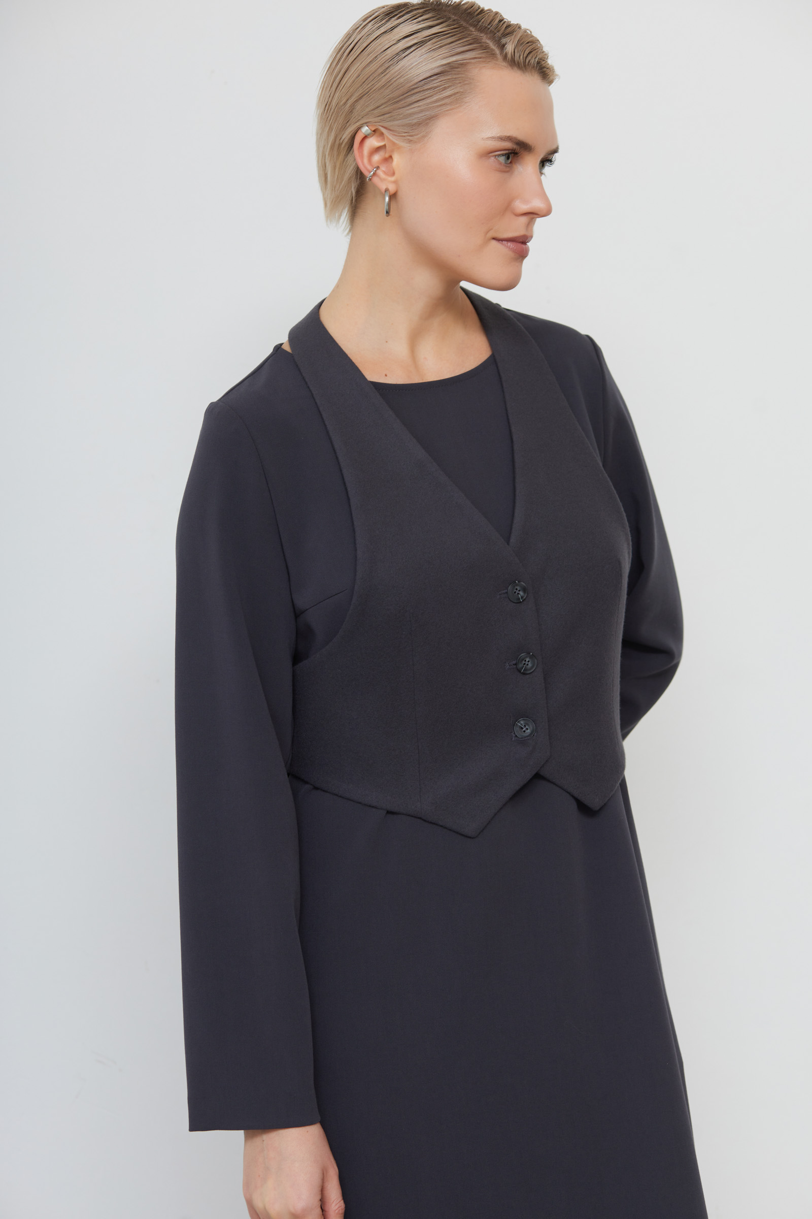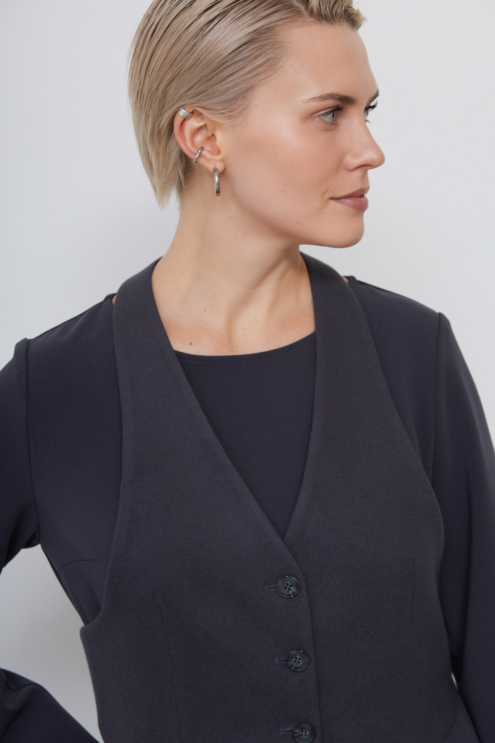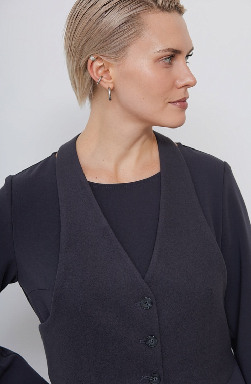 Укороченный жилет из мягкой костюмной ткани с открытой спиной.